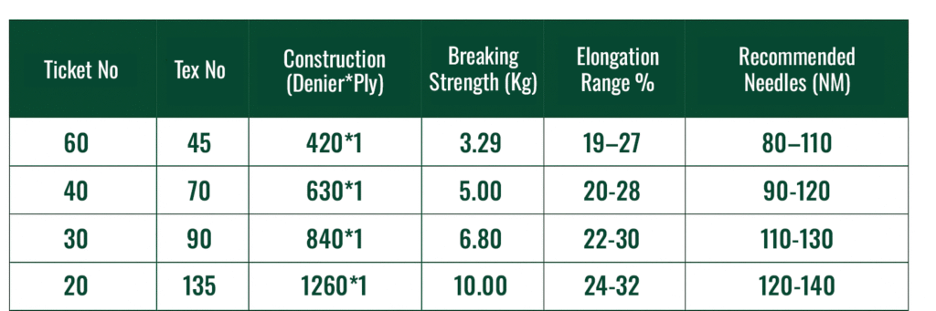 • High melting point of above 260 °C prevent the thread from melting at the needle eye while sewing