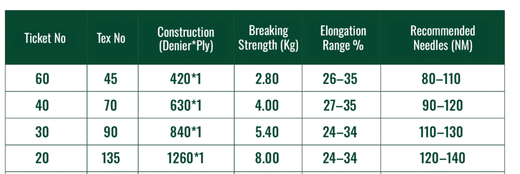 • High melting point of above 260 °C prevent the thread from melting at the needle eye while sewing